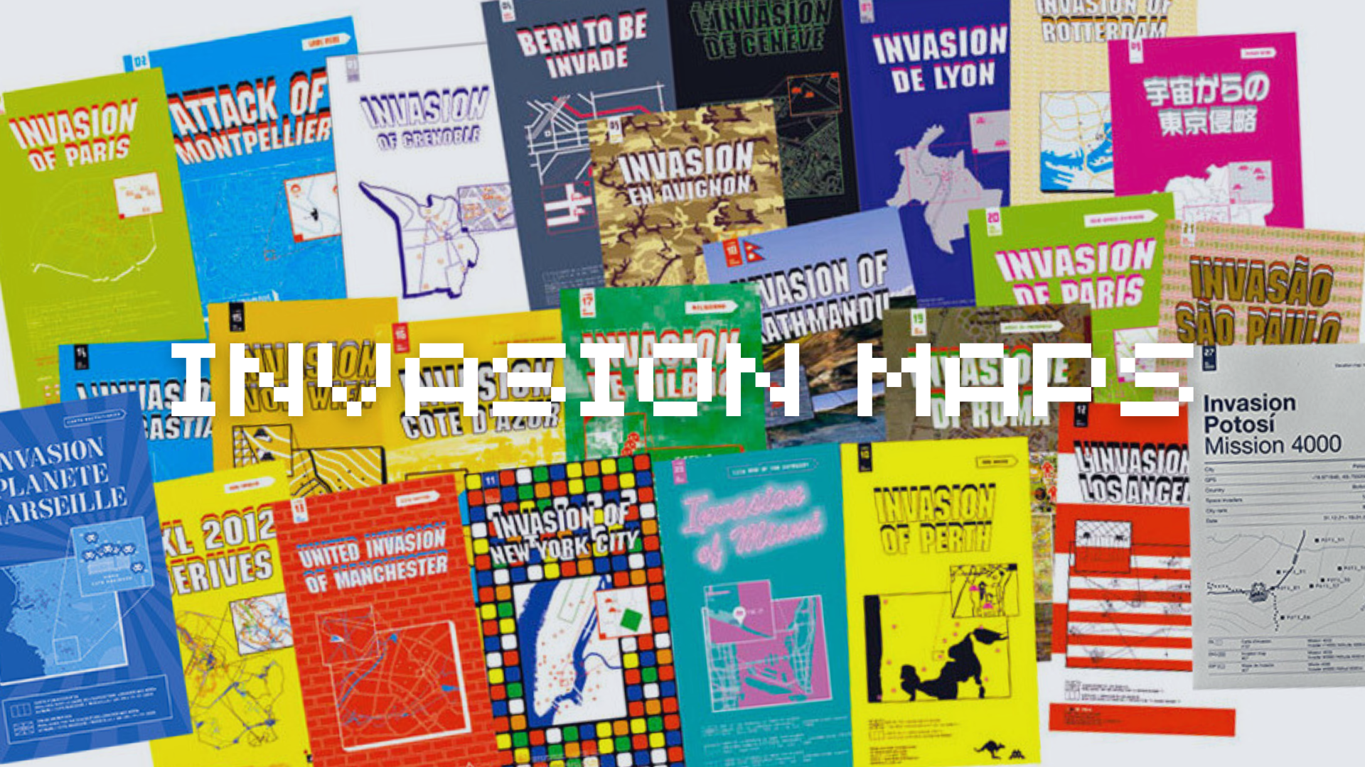 As you would expect, the Invasion Maps are sets of prints with maps of popular cities on them. Each Invasion Map is an exercise in graphic style and tells the story of the invasion of a city in its own way. Currently, there are 28 maps for different cities, with one exception being Paris, having three invasion maps.